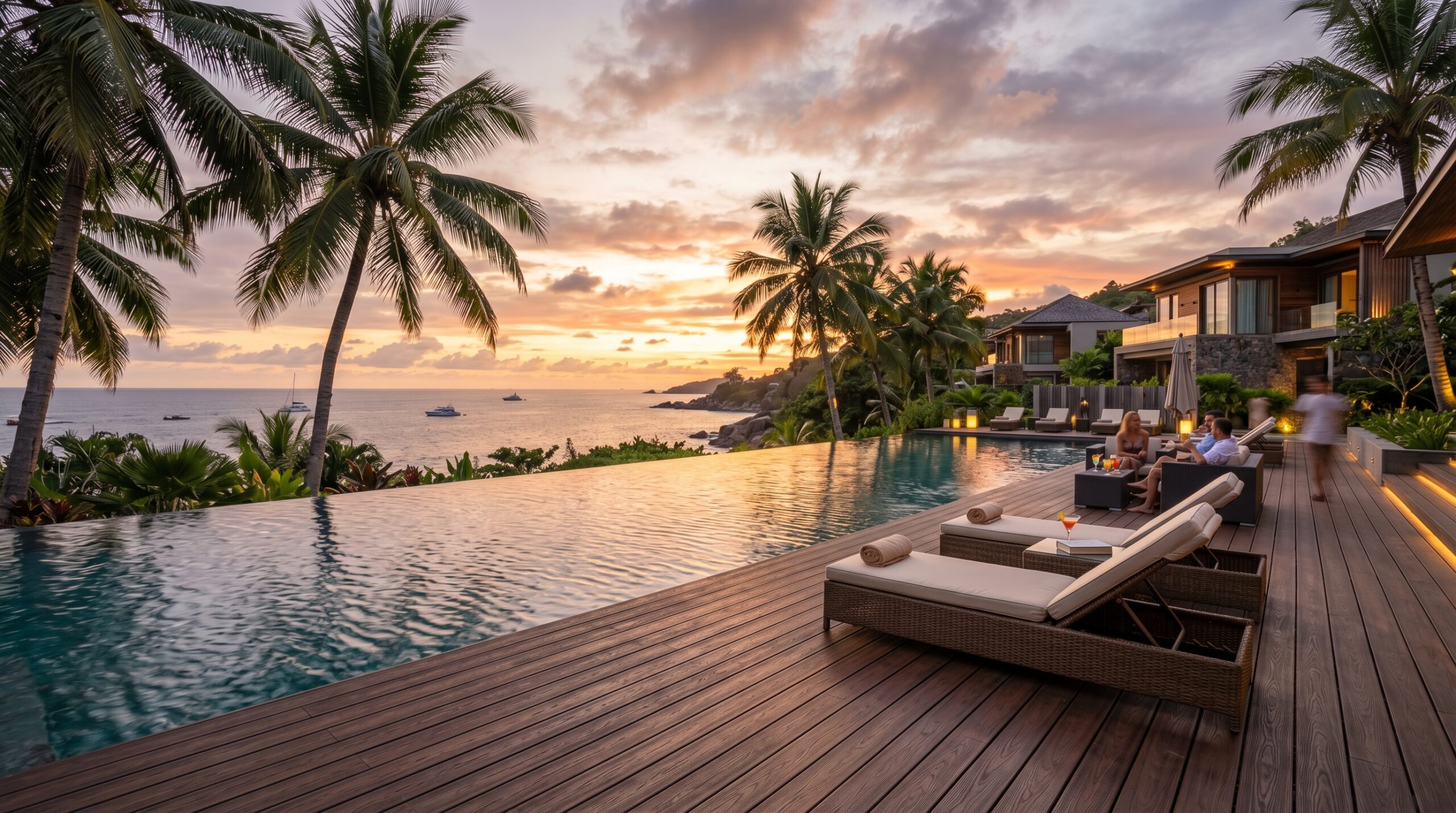 Nhờ khả năng chống nước và chống trượt, sàn gỗ ngoài trời là lựa chọn lý tưởng cho khu vực hồ bơi, mang lại vẻ đẹp Tôn lên vẻ đẹp không gian.
